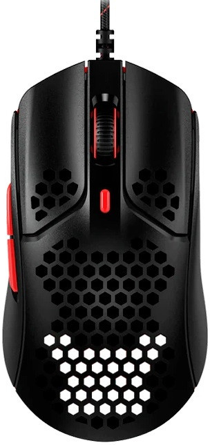 HYPERX Pulsefire Haste Gaming Mouse, Black/Red, Ultra-light hex shell design, 400–16000 DPI, 4 DPI presets, Pixart PAW3335 Sensor, Split-button design for extra responsiveness, Per-LED RGB lighting, USB, 80g