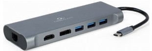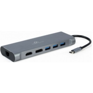 Gembird A-CM-COMBO8-01, USB Type-C 8-in-1 multi-port adapter (Hub3.0 + HDMI + DisplayPort + VGA + PD + card reader + LAN + stereo audio), USB Type-C PD charge support, space grey