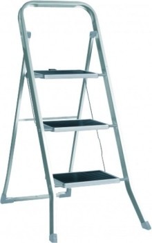 Scara de metal SUPER MAX 3 2123, 3 trepte, 116 x 48 x 6 cm, h-104 cm, max. 150 kg, antialunecare, culoare inox