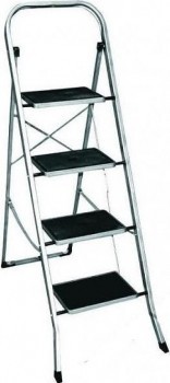 Scara de metal Eurogold SUPER MAX 4 2124, 4 trepte, 142 x 48 x 6 cm, h-127 cm, max. 150 kg, antialunecare, culoare inox