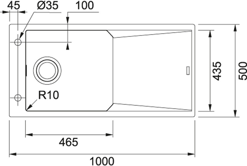 Размер мойки 1000x500 мм