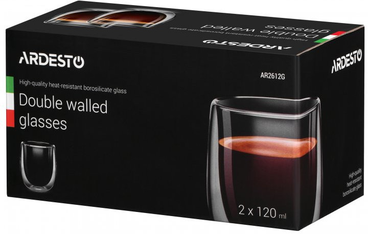 Набор чашек Ardesto с двойными стенками для американо, 120 мл, H 7,5 см, 2 шт, боросиликатное стекло