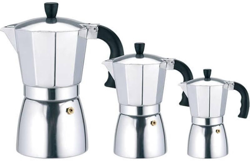 Изготовлена из прочного алюминиевого сплава. Оснащена фильтром-перколятором, медным клапаном для выхода пара, имеет аккуратный носик и ненагревающуюся удобную ручку из бакелита. Кофеварка подходит для всех источников тепла, кроме индукционных.