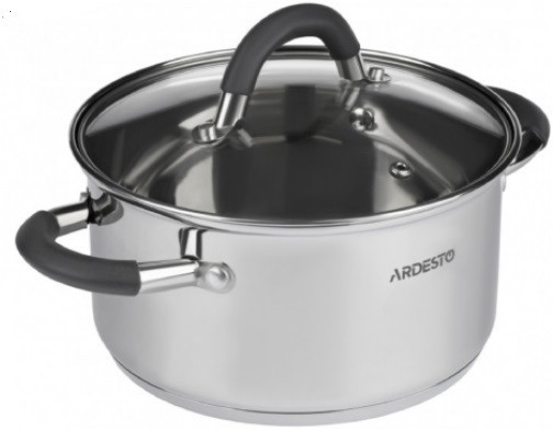 Кастрюля Ardesto Gemini Salerno, стеклянная крышка, 4.7 л, серые ручки с силиконом,нержавеющая сталь