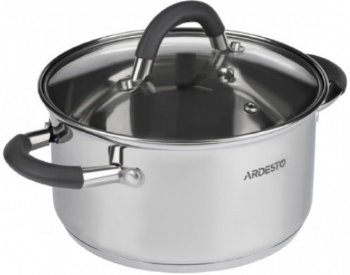 Кастрюля Ardesto Gemini Salerno, стеклянная крышка, 2.5 л, серые ручки с силиконом,нержавеющая сталь
