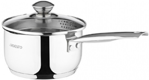 Ковш Ardesto Gemini Lecco с носиком для слива, стекл. крышка, 1,8 л, нержавеющая сталь