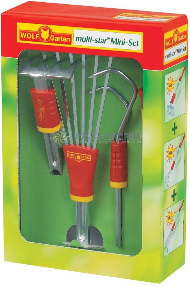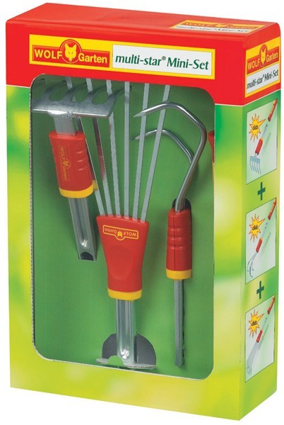 Набор WOLF-Garten P 224 для работ в небольшом саду, в теплице, на балконе, террасе. В набор включена одна рукоятка multi-star для малых инструментов и 3 инструмента multi-star (малые грабли, малые веерные грабли, малый культиватор). Весь инструмент выполнен из высококачественной немецкой стали.