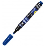 Универсальный маркер для работы на различных поверхностях. Водостойкие чернила на спиртовой основе, нетоксичны. Цвет колпачка соответствуют цвету чернил. Круглый наконечник с шириной линии 1 - 3 мм. Цвет чернил - синий.