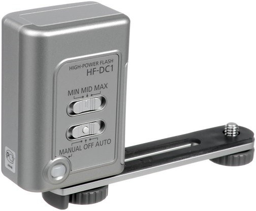 Вспышка HF-DC1 имеет ручной и автоматический режим, а так же обладает трёхступенчатым переключателем мощности.