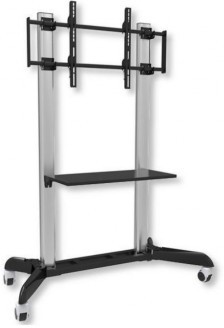 Mobile Single Trolley Reflecta TV Stand 70VCE-Shelf 37-70" max. VESA 600x400 max 50 kg •Mechanical height-adjustment from 127 to 177 cm by hand or using a power drill •Designed to load displays up to 90.7 kg •VESA mount 200 – 800 x 400 •Tool-less tilt adjustment with use of knobs (± 5°) •Professional cable management along the trolley column •Optional equipment - camera shelf, CPU holder, etc. •Large rolling casters enable safe and easy maneuverability over various flooring surfaces •Quick and easy installation
