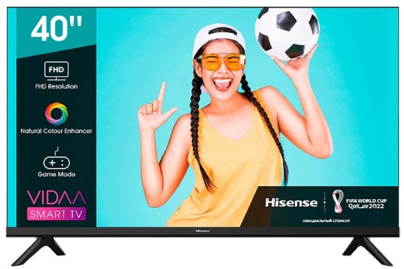 40'' DLED 1920x1080 FHD, PCI 900 Hz, SMART TV (VIDAA OS), 3 HDMI 2.1, 2 USB, Wi-Fi (802.11 b/g/n 2.4 GHz), DVB-T/T2/C/S2, OSD Language: ENG, RU, RO Speakers 2x7W, 5.