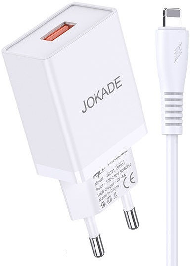 - Jokade Wall Charger with Cable USB to Lightning Single Port 5A JB022, White Jokade Wall Charger with Cable USB to Lightning Single Port 5A JB022, White .