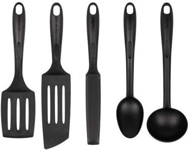 - TEFAL K001A504TEFAL K001A504 Материал нейлон Количество предметов 5 Материал ручек нейлон Ложка сервировочная да Лопатка да Лопатка с прорезями да Половник да Ocoбенности Ложка - 305мм , половник - 315мм , лопатка для блинов - 320мм , длинная лопатка - 305мм , угловая лопатка - 330 мм Производитель Tefal