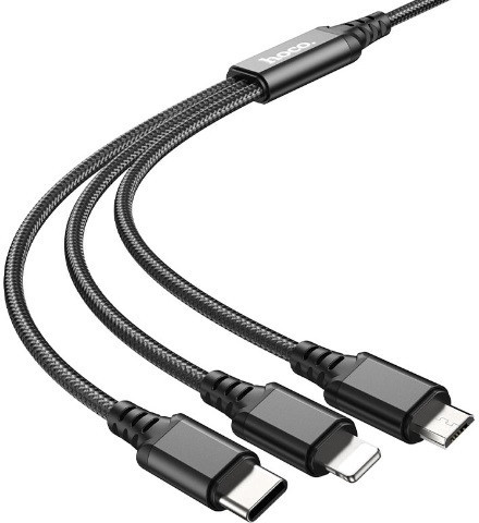 - HOCO X76 3-in-1 Super charging cable(Lightning/Type-C/Micro) BlackHOCO X76 3-in-1 Super charging cable(Lightning/Type-C/Micro), Black