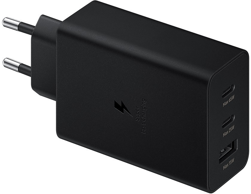 - Samsung Wall Charger 2xType-C + 1xType-A Super Fast Charging 65W Trio, Black Samsung Wall Charger 2xType-C + 1xType-A Super Fast Charging 65W Trio, Black