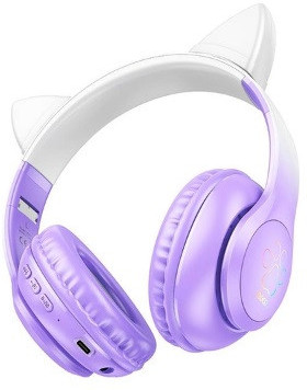 - HOCO W42 Cat ear kids BT headphones Purple grapeHOCO W42 Cat ear kids BT headphones Purple grape Тип наушников Полноразмерные Тип подключения Беспроводные Интерфейс подключения 3.5 мм (mini-Jack), Bluetooth Цвет Purple Диапазон частот наушников 20 Гц-20 кГц;