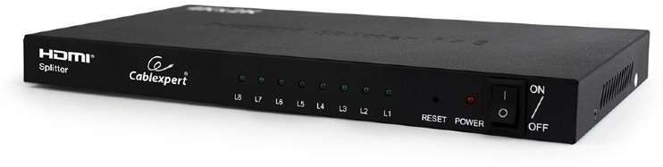 - Splitter HDMI 8 ports - Cablexpert - DSP-8PH4-03, HDMI splitter, 8 ports, 1 input, 4 output HDMI receptacles, 19 pin (A), HDMI + HDCP v.1.4 (compatible with all HDMI versions)Splitter HDMI 8 ports - Cablexpert - DSP-8PH4-03, HDMI splitter, 8 ports, 1 input, 4 output HDMI receptacles, 19 pin (A), HDMI + HDCP v.1.4 (compatible with all HDMI versions) Разветвитель HDMI сигнала Разветвляет цифровой HDMI видео\аудио сигнал на 8 мониторов, телевизоров или плазменных экранов Цифровой широкополос