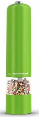 Grinder Esperanza MALABAR EKP001G Green, LED illumination during use Adjustable grinding thickness Length: 23cm Diameter: 5cm Power: 4* AA batteries (not included)