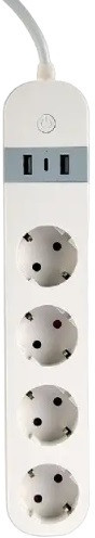 Smart power strip Gembird TSL-PS-S4U-01-W, 4 sockets, 1.5 m, with USB charger 2x USB Type-A, 1x USB Type-C, white