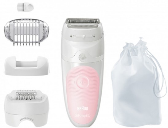 Эпилятор Braun SES5620, 28 tweezers, rechar, cordless rechargeable (operating time 60 minutes, charging time 30 min),2 speed settings, 3attachments, dry /wet use, white pink