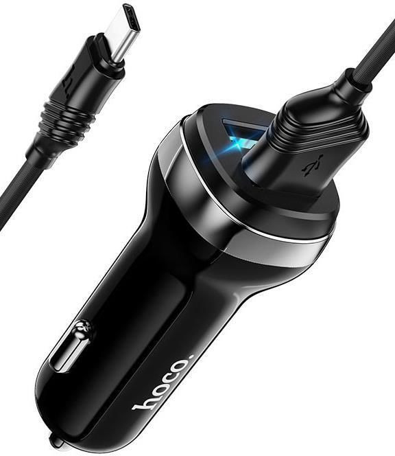 Hoco Car Charger 2xUSB with Type-C Cable Z40, Black