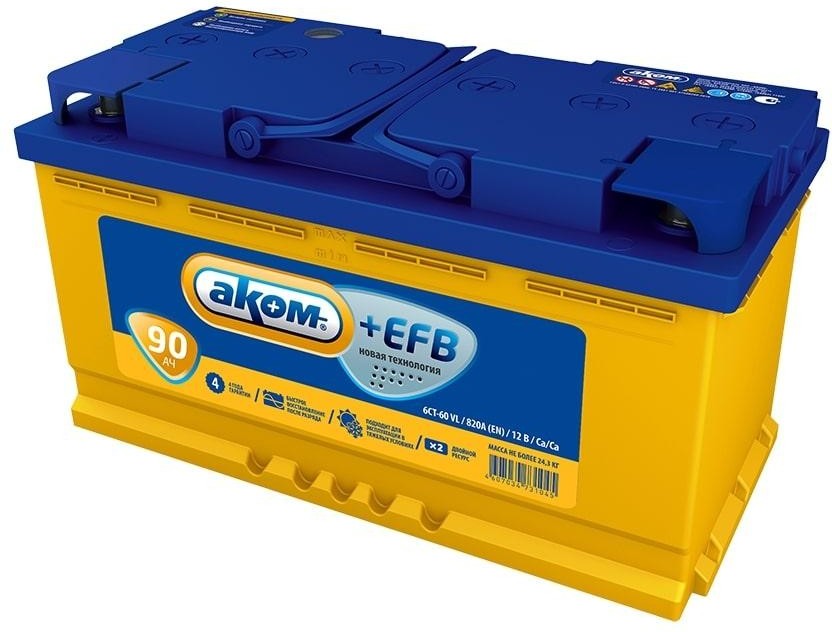 Описание АКБ-Аком 6 СТ-75 VL EFB Euro P+(720 A)/Acumulator