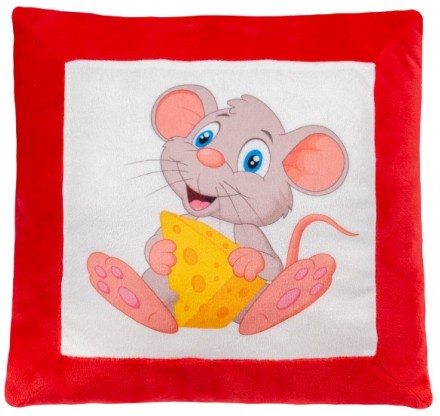 Подушка с изображением милой крысы шикарно подойдет к интерьеру любой детской комнаты и отлично послужит в качестве подушки.