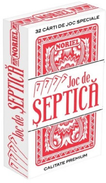 Pachet de carti de joc special pentru jocul de Septica. Include 32 de carti de joc, grupate in 4 suite (trefla, inima negra, inima rosie, caro) cu valorile: 7, 8, 9, 10, valet, dama, popa, as. Include si o carte cu regulament.
