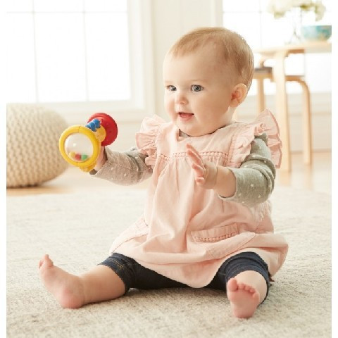 Дизайн ручки обеспечивает удобное расположение погремушки в самых крохотных ладошках.