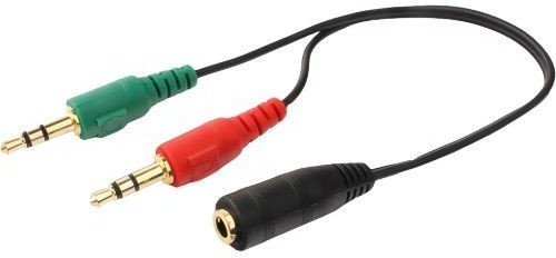 Audio cable 3.5mm - 0.2 m - Cablexpert CCA-418, 3.5mm 4-pin socket to 2 x 3.5 mm stereo plug adapter cable, allows connecting 4-pin plug headset to a PC computer, Black