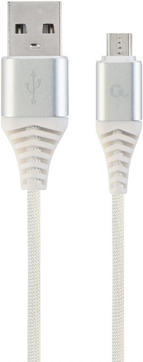 Cable USB2.0/Micro-USB Premium cotton braided - 2m - Cablexpert CC-USB2B-AMmBM-2M-BW2, Silver/White, USB 2.0 A-plug to Micro-USB plug, blister