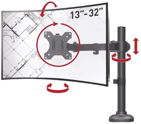 Table/desk stand for monitor Barkan M121T, 13"-27", max.12kg, VESA: 75x75, 100x100