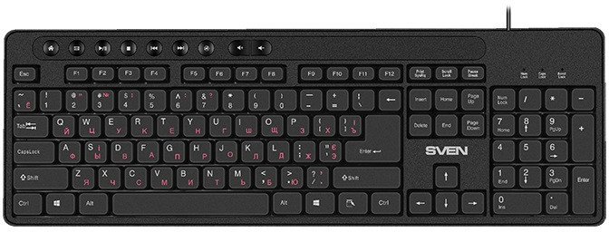 SVEN KB-C3060, Keyboard, Waterproof construction, 113 keys, 9 shortcut key, 1.5m, USB, Black