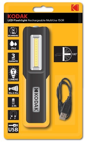 Перезаряжаемый светодиодный фонарик KODAK LED MultiUse 150R - это отличный маленький фонарик, который обеспечивает потрясающий уровень яркости с двумя режимами освещения и может заряжаться через USB! Идеально подходят для кемпинга, пеших прогулок, рыбалки, бега, выгула собак, перебоев в электроснабжении, чрезвычайных ситуаций или на рабочем месте: две световые функции позволяют выполнять целенаправленный поиск и использовать в домашних условиях. Магнитное основание обеспечивает легкое крепление к металлическим поверхностям, а удобный крючок позволяет использовать его для общего освещения - идеально подходит для освобождения рук для более важных задач!
